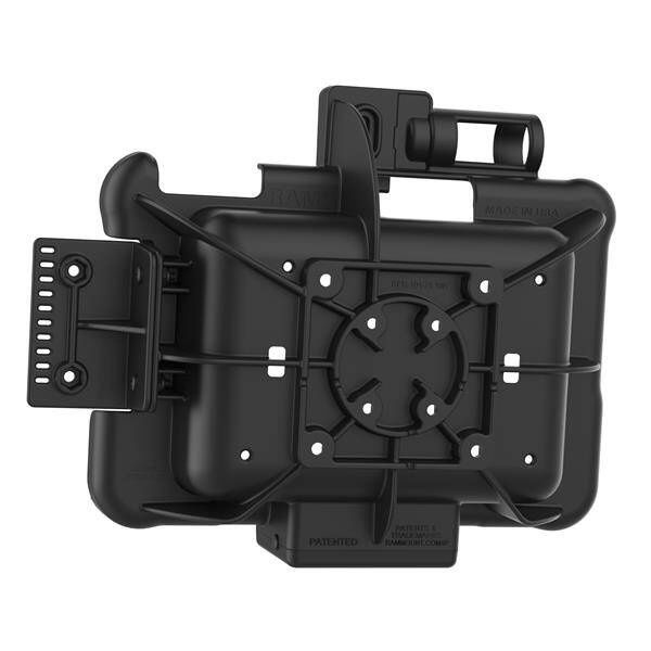 The GDS Vehicle Dock features a form-fit design specifically for the Zebra ET5x 8.3" & 8.4" series tablets, including cutouts leaving all buttons and ports exposed. The dock also allows the tablet's scanning function to work through the cutout on the back which also accommodates tablet add-ons such as scanner, hand strap, and PowerPack battery. This vehicle dock is compatible with C and D size RAM 4-hole AMPS and 75mm x 75mm VESA pattern bases for attaching a double socket arm in order to complete your mounting solution. Take the solution a step further by taking advantage of the built-in 2-hole mounting plate compatible with RAM 2-hole diamond base for additional device mounting such as a phone, or other handheld device. An included optional accessory bracket will allow you to connect RAM 2-hole diamond bases for device mounting and features a cable management system. BrandSymbolRAM-HOL-ZE10UProducer code793442013935Product Weight540 g594 gHardware Included(1) Side bracket for accessory mounting and strain relief|(4) #8-32 x 5/8” Machine Screws|(2) #8-32 x 1/2” Machine Screws|(6) #8-32 Nylock Nuts|(4) #10-24 x 5/8” Machine Screws|(4) #10-24 Nylock Nuts|(6) Small Cable TiesHole Pattern75 x 75mm VESA|4-Hole AMPS: 1.181" x 1.496"AMPS 4-Hole75 x 75 VESAMaterialsHigh strength compositePackaging TypePoly BagDevice or Accessory TypeTablet - CompatibilityZebra ET50 8.3" with rugged frameZebra ET51 8.4" with rugged frameZebra ET55 8.3" with rugged frameZebra ET56 8.4" with rugged frame