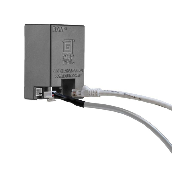 The GDS Uni-Conn Locking Tilt & Swivel Dock with PoE + Data (RAM-GDS-DOCKLR-D14-U1E-2A) is a free-standing, powered dock for devices enclosed in an IntelliSkin Next Gen, IntelliSkin Hard Case, or standard IntelliSkin Thin-Case with a GDS Uni-Conn adapter. This solution can swivel 180 degrees and allows devices to tilt 180 degrees, which is ideal for customer-centric industries like retail, hospitality, food service, and more. Power over Ethernet (PoE) is provided to the pogo pins integrated into the GDS Uni-Conn dock via RJ45 connection while the two USB-A ports on the back support up to two input devices like keyboard, mouse, scanner gun, and more. This dock features a weighted base and rubber pads that offer theft deterrence and prevent it from sliding around on surfaces. Keep your device safe in high-traffic environments with the key lock, integrated to provide additional theft deterrence. The light gray aesthetic is ideal for sophisticated, bright workplaces. One Dock to Connect Them All Always Protected. Always Connected. BrandSymbolRAM-GDS-DOCKLR-D14-U1E-2A-GRYProducer code793442023897SeriesHardware Included(1) RAM® PoE to PD Charging ModuleProduct DimensionsHeight from Base to Tilt Bolt: 5.52"|Base Width: 5.13"|Base Depth: 6.63"Packaging TypeBoxOutput VoltageUSB PD 3.0:|5V @ 3A|9V @ 2.2A|12V @ 1.7AUSB PD 3.0:|5V @ 3A|9V @ 2.2A|12V @ 1.67APD 3.0: 5V @ 3A 9V @ 2.22A 12V @ 1.67APower Output24W Max20W MaxInput ConnectorJST Male ConnectorInput Cable Length1.5 MetersPorts(2) USB-AComponent partsRAM-GDS-CHARGE-POE-PDUProduct Weight2894 gTransfer Speed10/100MbpsPower SpecificationsRequired Input: POE+ (802.3at) or greater - Recommended products