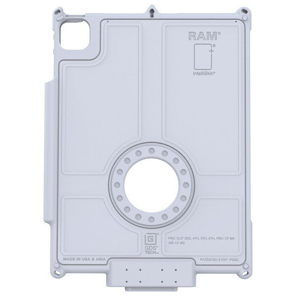 The IntelliSkin Next Gen for iPad Pro 13 (M4), Air 13 & Pro 12.9 - Gray (RAM-GDS-SKIN-AP47-NG-GRY) is a protective sleeve that combines a hard plastic shell with soft, shock-absorbing rubber. It features an integrated GDS connector molded directly into the skin, which prevents damage to your devices charging port from repetitive docking. The flat, ruggedized contacts on the connector collect less dirt and are easier to clean. The integrated connector also has a USB Type-C port that bypasses the pogo pads to charge the device when you dont have a GDS Dock available. It comes with a protective cap for the USB-C port, ensuring debris does not build up over time in field applications. This sleeve provides military-grade drop protection and is compatible with a variety of GDS Docks and accessories. The light gray color not only blends well into professional and industrial settings but also adds a clean, modern aesthetic. Always Protected. Always Connected. BrandSymbolRAM-GDS-SKIN-AP47-NG-GRYProducer code793442030383SeriesProduct Weight467 gMaterialsPolycarbonate and Thermoplastic ElastomersPackaging TypeRetail BoxTransfer SpeedUp to USB 3.1 @ 5Gbps (via D-Shape Contacts)*|Up to USB 2.0 @ 480Mbps (via External USB-C Port)PortsExternal USB-C 2.0 - CompatibilityApple iPad Pro 12.9 3rd - 6th GenApple iPad Air 13 (M2)Apple iPad Air 13 (M3)Apple iPad Pro 13 (M4)