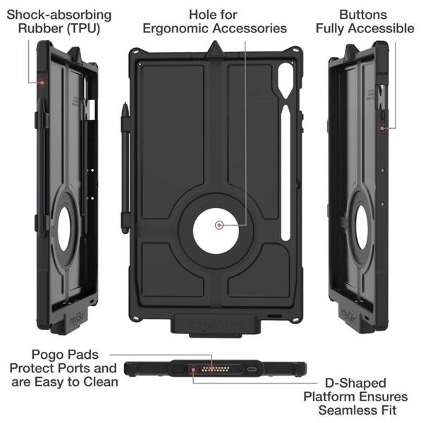 The IntelliSkin Next Generation protective sleeve for the Samsung Galaxy Tab S9 FE+ includes all the great features of the original IntelliSkin while adding several enhancements. An insert molded redesign of the skin combines a hard plastic shell with soft, shock-absorbing rubber. Ruggedized contacts for repetitive docking in field applications remain on the exterior, but are now flat to collect less dirt and allow for easier cleaning. And an integrated USB Type-C connector at the bottom of the skin allows for device charging even when you dont have a GDS Dock available. Like the original IntelliSkin, these sleeves still provide military-grade drop protection and prevent damage to your devices charging port from constant docking with an integrated GDS connector molded directly into the skin. The IntelliSkin Next Generation for the Samsung Galaxy Tab S9 FE+ is compatible with a variety of GDS Docks and accessories, as well as new docking cups for upgrading existing GDS vehicle docks. Always Protected. Always Connected. BrandSymbolRAM-GDS-SKIN-SAM87-NGProducer code793442018930SeriesHardware Included(4) Optional USB Type-C CapsMaterialsPolycarbonate and Thermoplastic ElastomersPackaging TypeRetail BoxPortsExternal USB Type-C Port*External USB-C 2.0Product Weight367 gTransfer SpeedUSB 2.0 @ 480 mbps (via D-Shape Contacts)Up to USB 3.1 @ 5Gbps (via D-Shape Contacts)*|Up to USB 2.0 @ 480Mbps (via External USB-C Port) - CompatibilitySamsung Galaxy Tab S9 FE+Samsung Galaxy Tab S9+Samsung Galaxy Tab S10+