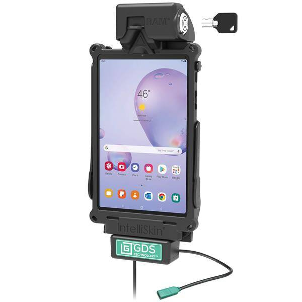 The GDS Cool-Dock is the upgraded version of the GDS Tough-Dock including a built-in 12-VDC Axial cooling fan with a 2.2 meter long hardwire power cord and a keyed locking system. The GDS Cool-Dock is the turnkey vehicle dock in the GDS Tech line of vehicle docks designed to support the Samsung Galaxy Tab A 8.4 (2020) in a Next Gen IntelliSkin protective sleeve for your fleet. Using a USB Type-C connector, the GDS Cool-Dock supports data sync and fast charging capabilities for the Samsung Galaxy Tab A 8.4 (2020). The GDS Cool-Dock contains a 4-hole AMPS pattern; compatible with RAM ball and socket mounting systems. The GDS Cool-Dock is backed by a 3-year warranty. Always Protected. Always Connected. BrandSymbolRAM-GDS-DOCKLF-SAM67CUProducer code793442011726Product Weight612 gHardware Included(4) #8-32 x 5/8" Machine Screws|(4) #8-32 Nylock Nuts|(2) Keys(4) #8-32 x 5/8" Machine Screws|(4) #8-32 Nylock Nuts|(2) Keys|(1) USB Type-C to Type-A CableHole Pattern4-Hole AMPS: 1.181" x 1.496"AMPS 4-HoleMaterialsHigh strength compositePackaging TypePoly BagOutput Voltage5V - 20V @ 3APower Output60WInput ConnectorUSB Type-CInput Cable Length.21 Meter380mmTransfer Speed5GbpsDevice or Accessory TypeTabletComponent partsRAM-GDS-DOCKL-SAM67CURAM-GDS-FAN1U - CompatibilitySamsung Galaxy Tab A 8.4 (SM-T307) with IntelliSkin® Next Gen