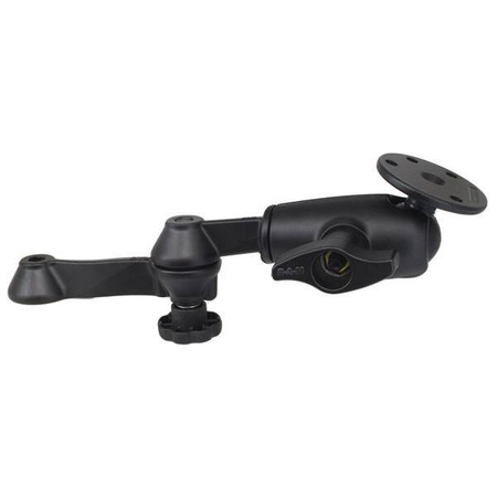 2.25" (D Size) Double Swing Arm with Swivel Socket Mount and 3.68" Diameter Base/2.25" Ball (AMPS). The RAM Mount RAM-VB-D-110-1U Double Swing Arm with Rotating Plate, allows you to twist and tilt the viewing angle of your laptop, tablet, UMPC, monitor, or any other connected electronic device, when mounted on your RAM Vehicle Mount. Taking the highly successful RAM Vehicle Mounts to the next level, this rotating swivel arm gives you even more viewing positions for your mounted electronic device while holding everything firmly in place. BrandSymbolRAM-VB-D-110-1UProducer code793442909986Product Weight1724 gHole PatternSee Drawing3-Hole 120 Degree (Large)MaterialsMarine grade-aluminumPackaging TypePoly BagBall & Socket SizeD Size 2.25" (Holds 2721.55 gramss)Vehicle TypeCar & TruckComponent partsRAM-D-240URAM-VB-109-3URAM-VB-D-110-2UBall SizeD Size (2.25") - Recommended products