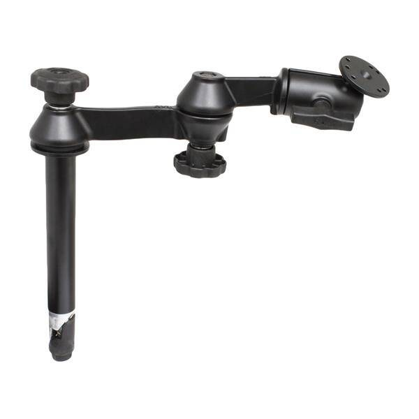 The RAM-VP-SW1-8 consists of a 8" upper male Tele-Pole, double swing arm and 2.5" round base that contains the universal AMPs hole pattern. The Tele-Pole can be easily adjusted by turning the knob at the top of the post. Once the knob has been tightened, the Tele-Pole becomes a rigid support for connecting devices or cradles. The Tele-Pole will connect to any RAM vehicle base with a welded female Tele-Pole. The double swing arm with rotating plate, allows you to twist and tilt the viewing angle of your connected electronic device, when mounted on your RAM Vehicle Mount. The rotating swivel arm gives you even more viewing positions for your mounted electronic device while holding everything firmly in place. The length of the double swing arm is 12". BrandSymbolRAM-VP-SW1-8Producer code793442905872SeriesProduct Weight1996 g2785 gHardware IncludedAssembly HardwareHole Pattern4-Hole AMPS: 1.181" x 1.496" & 3-Hole 120-Degree: 1.812" DiameterAMPS 4-Hole3-Hole 120 Degree (Small)Plate Size2.5" DiameterMaterialsPowder coated steel|Marine-grade aluminumPackaging TypeBoxBall & Socket SizeC Size 1.5" (Holds 1814.37 gramss)Component partsRAM-VB-110-1URAM-VP-TTM8UBall SizeC Size (1.5") - Recommended products