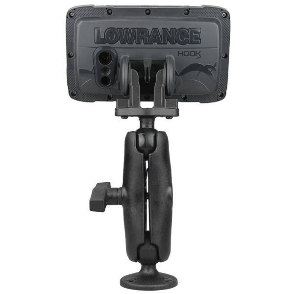 Designed for heavy duty salt water use, this C size (1.5) composite drill-down kit for the Lowrance Hook allows users to swap out the factory mounting solution with a RAM Mounts solution. Simply attach the included adapter to the Lowrance Hook and you're ready to connect the double socket arm and round base featuring the AMPS hole pattern. Made of high strength composite and powder coated marine grade aluminum, this kit is designed to keep your Hook secure and stable in rugged environments on your boat, kayak or inflatable. BrandSymbolRAP-101-LO12Producer code793442956119Product Weight531 gHardware IncludedAssembly HardwareSocket-to-Socket Length4.66"Hole Pattern4-Hole AMPS: 1.181" x 1.496"AMPS 4-HolePlate Size2.5" DiameterWeight CapacityStandard Use: 1814.37 gramss|Heavy-Duty Use: 1360.78 gramssMaterialsMarine-grade aluminum|High strength compositePackaging TypeRetail BagMounting TypeDrill DownBall & Socket SizeC Size 1.5" (Holds 1814.37 gramss)Socket Arm LengthMedium ArmDevice or Accessory TypeFishfinderChartplotterVehicle TypePower BoatKayakComponent partsRAM-202-LO12RAP-201URAP-202USocket To Socket Length4.66"Ball SizeC Size (1.5") - CompatibilityLowrance Hook Reveal 5 SeriesLowrance Hook²-4xLowrance Hook²-5Lowrance Eagle 4Lowrance Eagle 5