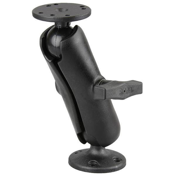 The RAP-101U-G4 consists of a 2.5" diameter round base with the universal AMPS hole pattern, double socket arm and round adapter base that attaches directly to the back of the Garmin echo. Designed into the mount is a 1.5" diameter patented rubber ball and socket system with adjustment points at both socket ends of the arm; this with RAM's rubber ball and socket technology allows for almost infinite adjustment and perfect viewing angles. Included is hardware that is used to attach the Garmin echo to the RAM Mount. BrandSymbolRAP-101U-G4Producer code793442940088Product Weight386 gHardware Included(3) #8-32 x 5/8" Machine Screws|(3) #8-32 Nylock NutsSocket-to-Socket Length4.66"Hole Pattern4-Hole AMPS: 1.181" x 1.496"AMPS 4-HolePlate Size2.5" DiameterWeight CapacityStandard Use: 1814.37 gramss|Heavy-Duty Use: 1360.78 gramssMaterialsHigh strength compositePackaging TypePoly BagMounting TypeDrill DownBall & Socket SizeC Size 1.5" (Holds 1814.37 gramss)Socket Arm LengthMedium ArmDevice or Accessory TypeFishfinderChartplotterVehicle TypePower BoatKayakComponent partsRAM-202-G4URAP-201URAP-202USocket To Socket Length4.66"Ball SizeC Size (1.5") - CompatibilityGarmin ECHOMAP Plus 42cvGarmin ECHOMAP Plus 43cvGarmin ECHOMAP Plus 44cvGarmin ECHOMAP Plus 45cvGarmin Striker 4Garmin Striker 4dvGarmin Striker Plus 4/cvGarmin Striker Vivid 4cvGarmin echo 100Garmin echo 150Garmin echo 300c