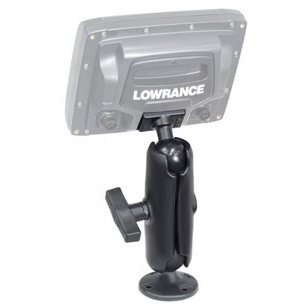 The RAP-101U-LO11 consists of a 2.5" diameter round base that contains the universal AMPS hole pattern double socket arm and adapter base that inserts directly to the back of Lowrance Elite-5, Elite-5 Ti, Elite-7 Ti/Ti, HOOK-3, HOOK-4, HOOK-5 and MARK-5 Fishfinders. The adapter serves as a quick release mechanism, allowing you to remove or transfer your Fishfinder in seconds. Designed into the mount is a 1.5" diameter patented rubber ball and socket system with adjustment points at both socket ends of the arm; this with RAM's rubber ball and socket technology allows for almost infinite adjustment and perfect viewing angles. Overall Height: 7.35" BrandSymbolRAP-101U-LO11Producer code793442940095Product Weight390 gProduct DimensionsOverall Height: 7.35"Socket-to-Socket Length4.66"Hole Pattern4-Hole AMPS: 1.181" x 1.496"AMPS 4-HolePlate Size2.5" DiameterWeight CapacityStandard Use: 1814.37 gramss|Heavy-Duty Use: 1360.78 gramssMaterialsMarine-grade aluminum|High strength compositePackaging TypePoly BagMounting TypeDrill DownBall & Socket SizeC Size 1.5" (Holds 1814.37 gramss)Socket Arm LengthMedium ArmDevice or Accessory TypeFishfinderChartplotterVehicle TypePower BoatKayakComponent partsRAM-202U-LO11RAP-201URAP-202USocket To Socket Length4.66"Ball SizeC Size (1.5") - CompatibilityLowrance Elite-5Lowrance Elite-5 TiLowrance Elite-7 TiLowrance Elite-7 Ti²Lowrance HOOK-3Lowrance HOOK-4Lowrance HOOK-5Lowrance MARK-5Simrad GO5 XSE