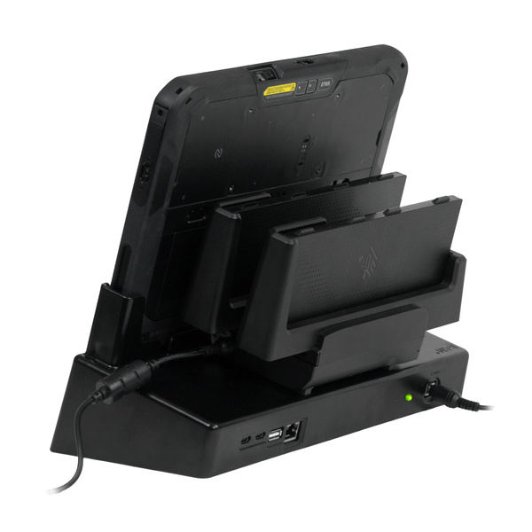 - Dock supports devices paired with ergonomic accessories, unless the 2-bay battery charger is installed