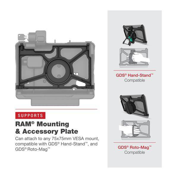The RAM key-locking, powered dock for the Panasonic FZ-A3 allows you to keep the device charged through the pogo pin contacts when the device is dockedpower is provided by connecting to the dock's 5.5mm DC power jack. This dock features cutouts that leave all buttons and ports exposed and accessible while also supporting the Panasonic extended battery, as well as RAM Mounting & Accessory Plate. A 2-Hole AMPS Accessory bracket can easily be attached to the dock to add an additional mounting location for another device such as a phone. This vehicle dock is compatible with C and D size RAM 4-hole AMPS and 75mm x 75mm VESA pattern bases for attaching a double socket arm in order to complete your mounting solution. BrandSymbolRAM-HOL-PAN16PLUProducer code793442934025Product Weight1102 gHardware Included(2) Keys|(4) #8-32 x 5/8" Machine Screws|(4) #8-32 Nylock NutsProduct DimensionsOverall Height: 10.5"|Overall Width: 11.19"|Overall Depth: 4.16"Hole Pattern4-Hole AMPS: 1.181" x 1.496"|75 x 75mm VESAMaterialsHigh strength compositePackaging TypePoly BagRegulatoryFCC, IC, E-MarkCertificationsCE, RoHS - CompatibilityPanasonic FZ-A3