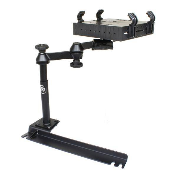 This No-Drill Laptop Stand System installs quickly and easily into the specified vehicles using the existing hardware of the passenger side seat rails. This configuration provides a telescoping feature that ranges from 12 to 18 inches. Dual swing arms provide articulation and 12 inches of reach for passenger and driver access to the mounted device. Patented rubber ball and socket joint provides additional adjustment as well as shock and vibration isolation. The RAM Tough-Tray is spring loaded to accommodate 10" to 16" wide laptops & (17" wide screens) . The tray features four adjustable retaining arms with rubber grip feature. These arms can be moved both vertically and horizontally. This allows for a custom fit for varying thicknesses of laptops and the freedom of not blocking ports or drives. A screen support and USB light are also available to accessorize the tray. Hole patterns on perimeter of tray facilitate the mounting of additional RAM systems to support GPS or other electronics. BrandSymbolRAM-VB-156-SW1Producer code793442903809SeriesProduct Weight6804 gHardware IncludedAssembly Hardware|Foot Stabilizer|(2) M10 x 40mm Hex Bolts|(2) 10mm Flat Washers|(2) 10mm Lock Washers|(2) 3/8" Fender WashersTray DimensionsWidth Range: 10" - 16"|Side Arm Clamp Height: .5" - 1.75"|Tray Depth: 10"|Tray Thickness: 2.125"Hole PatternSeat Bolt Distance: 18.25" center to centerMaterialsPowder coated steel|Marine grade-aluminum|High strength compositePackaging TypeBoxMounting TypeFloor MountBall & Socket SizeC Size 1.5" (Holds 1814.37 gramss)VehicleHyundai AzeraHyundai ElantraHyundai SonataKia OptimaHyundai Azera (2006-2009)Hyundai Elantra (2005-2011)Hyundai Sonata (2005-2009)Kia Optima (2005-2009)Device or Accessory TypeLaptopVehicle TypeCar & TruckComponent partsRAM-234-3RAM-VB-156RAM-VP-SW1-89Ball SizeC Size (1.5") - Recommended products