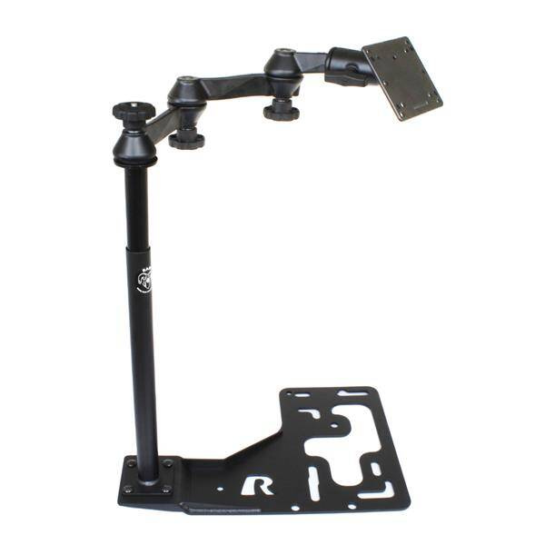 The RAM No-Drill mounting base features a heavy-duty steel mounting base custom designed to fit these vehicles perfectly. Using the passenger side seat rail bolts as attachment points, existing hardware is used to secure the base in the vehicle. This configuration provides a telescoping feature with upper and lower poles that allow you to set your mount to the desired height with the simple turn of a knob. The triple swing arm provides articulation and 18 inches of reach for passenger and driver access to the mounted device. Patented rubber ball and socket joint provides additional adjustment as well as shock and vibration isolation. This vehicle base kit comes with the VESA plate that includes 75mm x 75mm and 100mm x 100mm hole patterns. BrandSymbolRAM-VB-168-246Producer code793442916816SeriesProduct Weight9979 g9262 gHardware IncludedAssembly HardwareHole PatternSee Drawing100 x 100 VESA75 x 75 VESA100 x 50 Half VESAMaterialsPowder coated steel|Marine grade-aluminumPackaging TypeBoxMounting TypeFloor MountBall & Socket SizeC Size 1.5" (Holds 1814.37 gramss)Device or Accessory TypeMonitorVehicle TypeCar & TruckComponent partsRAM-246URAM-VB-109-3URAM-VB-110-1NBURAM-VB-168RAM-VP-TBF18URAM-VP-TTM12UBall SizeC Size (1.5") - Recommended products