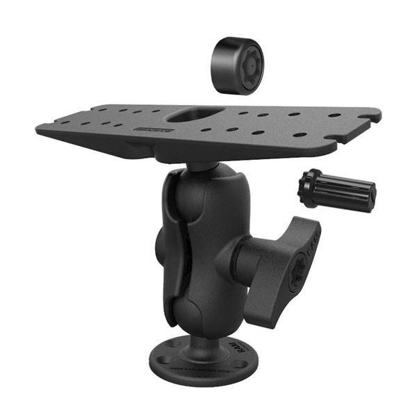 The RAM-SG-D-111U-C consists of a 3.68" diameter round base, SHORT LENGTH double socket arm, 11" x 3" rectangular base, RAM mixed combination Pin-Lock security nut/knob and key knob for Gimbal Brackets. The round base contains pre-drilled holes, including two holes at 180 degrees and three holes at 120 degrees. The rectangle base contains different combinations of pre-drilled holes which will match up to many electronic devices and mounts. BrandSymbolRAM-SG-D-111U-CProducer code793442945342Product Weight2028 gHardware Included(2) RAM Pin-Lock Security Keys|(4) .312" x .187" Shoulder WashersProduct DimensionsOverall Length: 8.125"Socket-to-Socket Length3.6"Hole PatternSee DrawingsPlate SizeTop Plate: 3" x 11"|Bottom Plate: 3.68" DiameterWeight CapacityStandard Use: 2721.55 gramss|Heavy-Duty Use: 2267.96 gramssMaterialsMarine-grade aluminumPackaging TypePoly BagMounting TypeDrill DownBall & Socket SizeD Size 2.25" (Holds 2721.55 gramss)Socket Arm LengthShort ArmDevice or Accessory TypeFishfinderChartplotterVehicle TypePower BoatComponent partsRAM-D-111BURAM-D-201U-CRAM-D-202URAP-S-KNOBGURAP-S-NUT5USocket To Socket Length3.6"Ball SizeD Size (2.25") - CompatibilityGarmin ECHOMAP Ultra 122svGarmin ECHOMAP Ultra 126svGarmin Fishfinders and GPS ChartplottersGarmin GPSMAP 1020xsGarmin GPSMAP 1040xsGarmin GPSMAP 1222/xsv TouchGarmin GPSMAP 1242xsv/TouchGarmin GPSMAP 740sGarmin echoMAP 70DVHumminbird 800 SeriesHumminbird Fishfinders and GPS ChartplottersLowrance Elite-12 TiLowrance Elite-12 Ti²Lowrance Elite-9 CHIRPLowrance Elite-9 TiLowrance Elite-9 Ti²Lowrance Fishfinders and GPS ChartplottersLowrance HDS Carbon 12Lowrance HDS Carbon 9Lowrance Hook²-12Raymarine Axiom 7Raymarine Axiom 9Raymarine C120Raymarine Fishfinders and GPS Chartplotters
