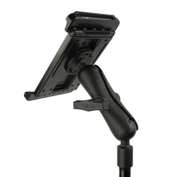 The RAM Tab-Tite bundle is a rugged mount including the RAM Tab-Tite and the RAM Pod HD Vehicle Mount with 18" Aluminum Rod and Round Plate. The RAM Tab-Tite spring loaded, quick release holder offers a secure fit with easy access to the mounted tablet. The spring loaded design makes it easy to insert and remove your tablet, along with keeping it secure in mobile applications. The custom end cups are designed to optimize the functionality of your tablet, enabling access to all ports and tablet functions. The included back plate is interchangeable with various size support cups, making it compatible with numerous tablet models. The included RAM Pod HD Vehicle Mount with 18" Aluminum Rod and Round Plate blends the best of versatility, strength and installation ease; the RAM Pod HD is a workhorse for fleet and serious consumers alike. Requiring minimal space in the vehicle cab, the pipe can be removed quickly without the use of tools. The versatility of the RAM Pod HD makes it an ideal solution for mixed vehicle fleets, consumer vehicles of all types and other applications which require a robust mounting platform for your tablet. BrandSymbolRAM-316-HD-18-TAB24UProducer code793442310065SeriesProduct Weight2685 g2604 gHardware IncludedAssembly Hardware|Stabilizer FootProduct DimensionsHeight Range: 24.75" - 31.75"|Pipe Diameter: .84" ODHolder DimensionsHeight Range: 8.08" - 10.69"|Width Range: 3.77" - 4.96"|Depth Range: .13" - .36"Socket-to-Socket Length4.66"Hole PatternSee DrawingPlate SizeSee DrawingWeight CapacityStandard Use: 1814.37 gramss|Heavy-Duty Use: 1360.78 gramssMaterialsPowder coated Steel|Marine-grade aluminum|High strength compositePackaging TypePoly BagMounting TypeFloor MountBall & Socket SizeC Size 1.5" (Holds 1814.37 gramss)Socket Arm LengthMedium ArmDevice or Accessory TypeTabletVehicle TypeCar & TruckComponent partsRAM-316-HD-18-202URAM-HOL-TAB24USocket To Socket Length4.66"Ball SizeC Size (1.5") - CompatibilityASUS MeMO Pad 8ASUS VivoTab 8ASUS ZenPad 8.0ASUS ZenPad S 8.0Dell Venue 8 7840Huawei MediaPad M3Huawei MediaPad M3 LiteHuawei MediaPad T3 8LG G Pad F 8.0 (2nd Gen)LG G Pad II 8.0LG G Pad X 8.0Lenovo Tab 2 A8Lenovo Tab 4 8Lenovo Tab 4 8 PlusLenovo Tab A8-50Lenovo Tab S8Lenovo Tab3 8Samsung Galaxy Tab 3 8.0Samsung Galaxy Tab 4 8.0Samsung Galaxy Tab A 8.0 (2017)Samsung Galaxy Tab A 8.0 (2018)Samsung Galaxy Tab A 8.0 (2019)Samsung Galaxy Tab A 8.4Samsung Galaxy Tab E 8.0Samsung Galaxy Tab S 8.4Samsung Galaxy Tab A7 Lite 8.7