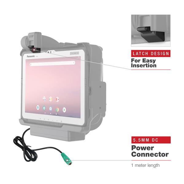 - All buttons and ports on device are exposed and fully accessible; supports Panasonic extended battery and the RAM® Mounting & Accessory Plate