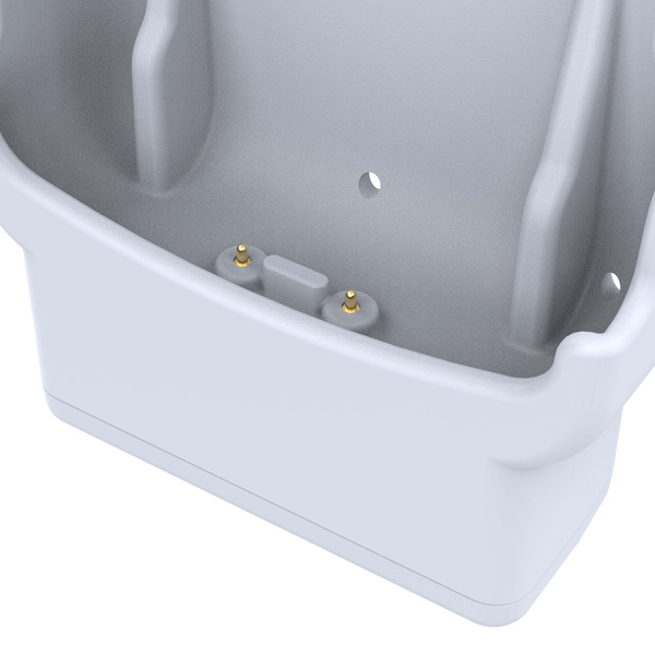 - Spring-loaded powered dock featuring pogo-pin device connection designed for the Zebra HC20 & HC50