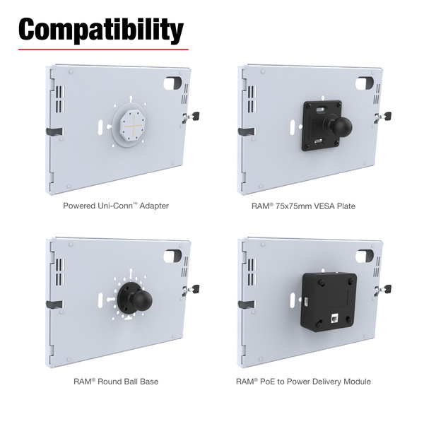 - Secure to RAM® ball mounts with VESA and AMPS pattern; or flush mount