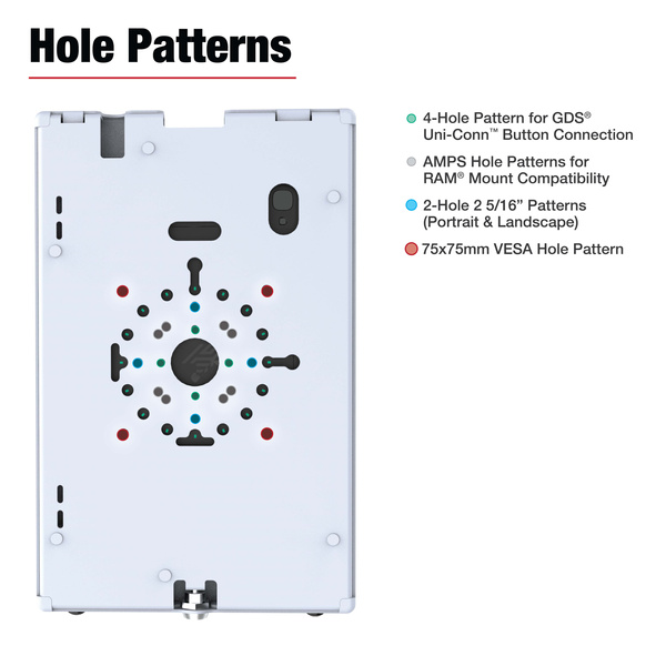 - Secure to RAM® ball mounts with VESA and AMPS pattern; or flush mount
