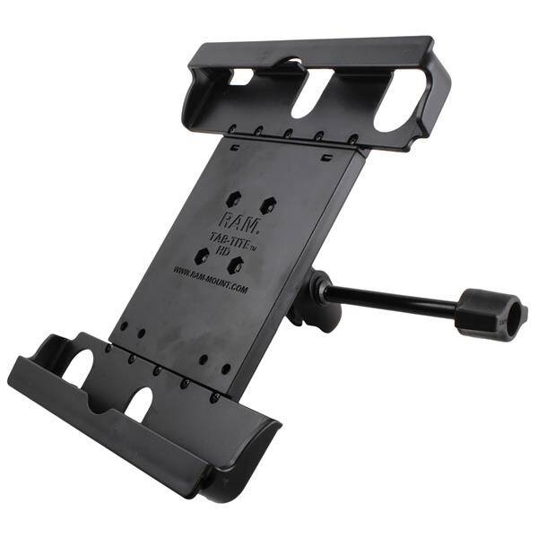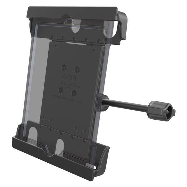 Get the most out of your tablet with the RAM Tab-Tite spring loaded, quick release cradle. With interchangeable cup ends, you can fit the cradle to your tablet for a near custom fit. This spring loaded design makes it easy to load and unload your tablet, along with keeping it secure while on the go. Cup ends are designed to optimize the functionality of your tablet, allowing access to audio jacks, usb, power, and other ports, your tablet can be used just as it was intended. Perfect for stationary or on the go applications, this new RAM product is just what you need to get the most out of your tablet. Connected to the RAM Tab-Tite is a round plate with 1" ball, connected to a short length double socket arm with retension knob. The open socket on the opposite end of the socket arm can clamp onto any RAM 1" ball components to complete your solutions, with infinite adjustability and the freedom to mount your tablet virtually anywhere. The Tab-Tite cradle is compatible with any tablet that will fit the dimensions listed below. It is important to verify the dimensions of your tablet when determining the overall size. Cradle Dimensions: Height: 9.5" to 12.125" Width: 6.55" to 7.43" Depth: 0.3" to 0.875" BrandSymbolRAM-HOL-TAB20-B-201-A-ALA1-KRUProducer code793442123160SeriesProduct Weight540 g490 gHardware IncludedAssembly HardwareHolder DimensionsHeight Range: 9.5" - 12.125"|Width Range: 6.55" - 7.43"|Depth Range: .3" - .875"Socket-to-Socket Length1.75"Weight CapacityStandard Use: 907.18 gramss|Heavy-Duty Use: 453.59 gramsMaterialsHigh strength compositePackaging TypePoly BagSocket Arm LengthShort ArmDevice or Accessory TypeTabletComponent partsRAM-B-201-A-ALA1-KRURAM-B-202URAM-HOL-TAB20USocket To Socket Length1.75"Ball SizeB Size (1") - CompatibilityASUS ZenPad 10 with CaseASUS ZenPad 3S 10 with CaseASUS ZenPad Z10 with CaseApple iPad (5th Generation) with CaseApple iPad (6th Generation) with CaseApple iPad (7th Generation) with CaseApple iPad (8th Generation) with CaseApple iPad (9th Generation) with CaseApple iPad 9.7 (2017) with CaseApple iPad 9.7 (2018) with CaseApple iPad Air 2 with CaseApple iPad Air with CaseApple iPad Pro 10.5 (2nd Generation) with CaseHuawei MediaPad M2 10.0 with CaseLG G Pad 10.1 with CaseLG G Pad II 10.1 with CaseLG G Pad X 10.1 with CaseLG G Pad X II 10.1 with CaseLenovo Tab 2 A10-70 with CaseLenovo Tab 4 10 Plus with CaseLenovo Tab 4 10 with CaseLenovo Tab3 10 Business with CaseLenovo Yoga Tab 3 10 with CaseMicrosoft Surface Go 2 with CaseMicrosoft Surface Go with CaseSamsung Galaxy Tab 10.1 with CaseSamsung Galaxy Tab 3 10.1 with CaseSamsung Galaxy Tab 8.9 with CaseSamsung Galaxy Tab A 10.5 with CaseSamsung Galaxy Tab A 9.7 with CaseSamsung Galaxy Tab Pro 10.1 with CaseSamsung Galaxy Tab S2 9.7 with CaseSamsung Galaxy Tab S3 9.7 with CaseSamsung Galaxy Tab S4 10.5 with CaseSamsung Galaxy Tab S6 with CaseSamsung Galaxy Tab S7 with CaseSamsung Galaxy Tab S8 with CaseSony Xperia Tablet Z with CaseVankyo MatrixPad Z4 10"Apple iPad (10th Generation) with CaseSamsung Galaxy Tab S9 with CaseSamsung Galaxy Tab S9 FE with CaseLenovo Tab K11 with CaseApple iPad (11th Generation) with Case