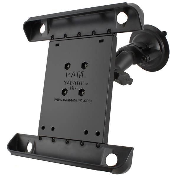 The RAM-B-166-TAB3U consists of a 3.3" diameter suction cup twist lock base, double socket arm, round base adapter and Tab-Tite universal clamping cradle. The suction cup base is designed to have a strong hold on glass and non-porous plastic surfaces, including RAM adhesive disks. The mount is designed with a RAM 1" diameter patented rubber ball and socket system that has adjustment points at both ends of the double socket arm; this allowing for almost infinite adjustment and perfect viewing angles. The spring loaded Tab-Tite cradle makes it easy to load and unload your tablet, along with keeping it secure while on the go. Interchangeable cup ends are designed to optimize the functionality of your tablet, allowing access to audio jacks, usb, power, and other ports, your tablet can be used just as it was intended. The Tab-Tite cradle is compatible with any tablet that will fit the dimensions listed below. It is important to verify the dimensions of your tablet when determining the overall size. BrandSymbolRAM-B-166-TAB3UProducer code793442931949SeriesProduct Weight544 gHardware IncludedAssembly HardwareHolder DimensionsHeight Range: 8.5" - 11.125"|Width Range: 6.38" - 7.75"|Depth Range: .13" - .56"Suction Size3.3" DiameterSocket-to-Socket Length3"Weight CapacityStandard Use: 907.18 gramss|Heavy-Duty Use: 453.59 gramsMaterialsMarine-grade aluminum|High strength compositePackaging TypePoly BagMounting TypeSuction CupBall & Socket SizeB Size 1" (Holds 907.18 gramss)Socket Arm LengthMedium ArmDevice or Accessory TypeTabletVehicle TypeAircraftComponent partsRAM-B-166-202URAM-HOL-TAB3USocket To Socket Length3"Ball SizeB Size (1") - CompatibilityASUS MeMO Pad FHD 10ASUS Transformer PadApple iPad (1st Generation)Apple iPad (2nd Generation)Apple iPad (3rd Generation)Apple iPad (4th Generation)Apple iPad Air 4Apple iPad Air 5Apple iPad Pro 11"Apple iPad Pro 11" (2020)Apple iPad Pro 11" (2021)Dell Venue 10 7000Dell Venue 11 Pro 7000HP ElitePad 900HP ElitePad 900 G1HP Pro 610Lenovo S6000Lenovo Tab A10Lenovo ThinkPad 10Lenovo Yoga Tablet 10Lenovo Yoga Tablet 10 HD+Lenovo Yoga Tablet 2 (10 inch)