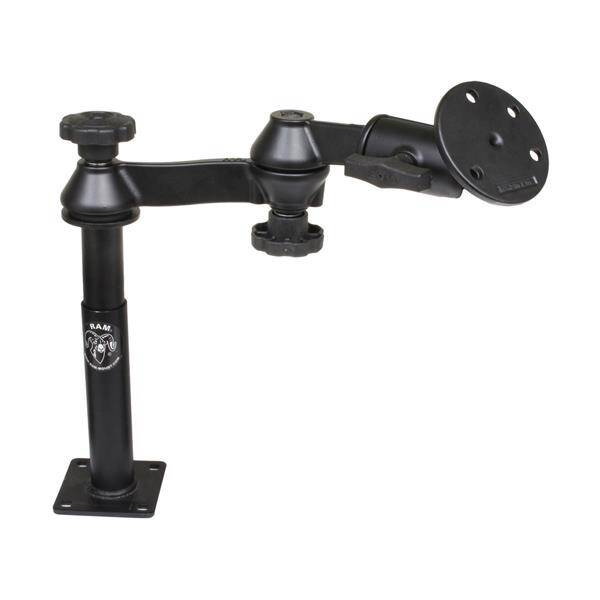 The RAM-VP-SW1-47-240 consists of a 7" lower female Tele-Pole, 4" upper male Tele-Pole, double swing arm and 3.68" round base. The lower female Tele-Pole will attach to all RAM vehicles bases that do not contain a welded female Tele-Pole. The height of the Tele-Poles, combinded, can easily be adjusted by turning the knob at the top of the post. Once the knob has been tightened, the Tele-Pole becomes a rigid support for connecting devices or cradles. The double swing arm allows you to twist and tilt the viewing angle of your connected electronic device, when mounted on your RAM Vehicle Mount. The rotating swivel arm gives you even more viewing positions for your mounted electronic device while holding everything firmly in place. The length of the double swing arm is 12". The 3.68" round base contains pre-drilled holes that connects to RAM Tough-Dock Powered Docking Stations. BrandSymbolRAM-VP-SW1-47-240Producer code793442935428SeriesProduct Weight2427 gHardware IncludedAssembly Hardware|(4) 5/16"-18 x 1" Carriage Bolts|(4) 5/16"-18 Hex Nuts|(4) 5/16" Flat Washers|(4) 5/16" Split Lock Washers|(4) Rubber CapsProduct DimensionsMinimum Height: 12.3"|Maximum Height: 15.3"Hole PatternTele-Pole: 2.625" x 2.625"|Round Plate: See Drawing3-Hole 120 Degree (Large)Plate SizeRound Plate: 3.68" Diameter|Lower Pole: 3.5" x 3.5"MaterialsPowder coated steel|Marine-grade aluminumPackaging TypeBoxMounting TypeDrill DownBall & Socket SizeC Size 1.5" (Holds 1814.37 gramss)Component partsRAM-240URAM-VB-110-1NBURAM-VP-TBF7URAM-VP-TTM4UBall SizeC Size (1.5") - Recommended products