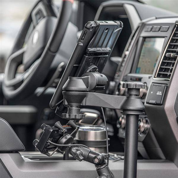 This in-vehicle workstation mount features a RAM Tele-Pole 9" base, RAM Tele-Pole 8" upper pole with flange, 6" swing arm, and a long C size double socket arm. Easily connect any RAM tablet mount or holder to the flange double ball mount and connect our GDS Keyboard to the swing arm system to complete the ultimate mobile workstation. With the ability to swing the keyboard out of the way when not in use as well as position the monitor at nearly any angle, ensure your mobile workstation is backed by RAM Mounts for strength, durability, and versatility. BrandSymbolRAM-VP-SW2F-89Producer code793442012150SeriesProduct Weight3425 gHardware IncludedAssembly Hardware|(4) 5/16"-18 x 1" Carriage Bolts|(4) 5/16"-18 Hex Nuts|(4) 5/16" Flat Washers|(4) 5/16" Split Lock Washers|(4) Rubber CapsHole PatternTele-Pole: 2.625" x 2.625"|Round Plate: 4-Hole AMPS: 1.181" x 1.496" & 3-Hole 120-Degree: 1.812" DiameterAMPS 4-HoleMaterialsPowder coated steel|Marine-grade aluminumPackaging TypeBoxBall & Socket SizeC Size 1.5" (Holds 1814.37 gramss)Device or Accessory TypeTabletKeyboardComponent partsRAM-101U-DRAM-VB-110-5-DIS1URAM-VP-TBF9URAM-VP-TTMF8UBall SizeC Size (1.5") - Recommended products