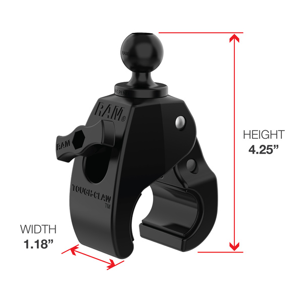 - RAM® Tough-Claw™ secures to 0.625"–1.14" bars